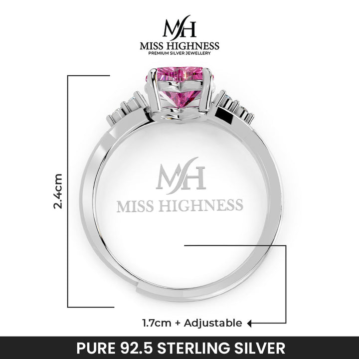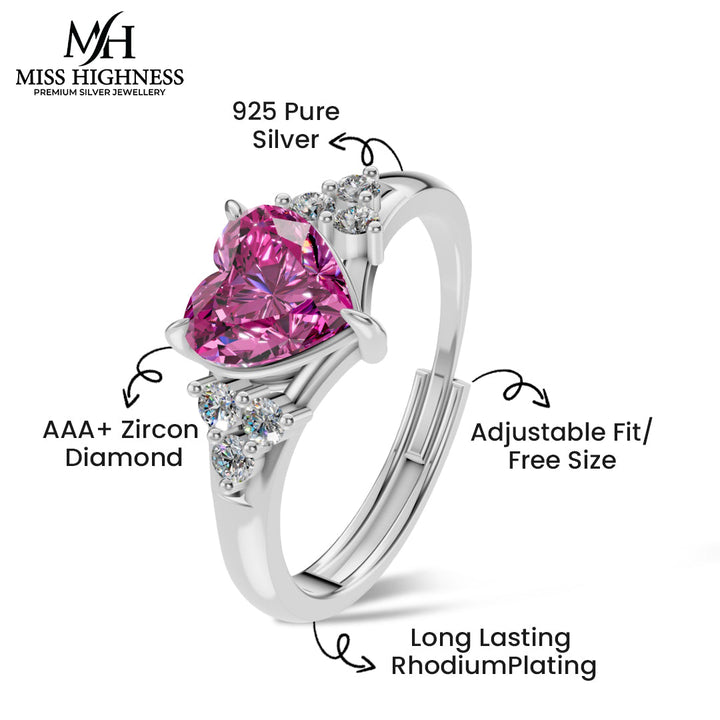 Fall in love with the charming elegance of this heart-shaped ring from Miss Highness Premium Silver Jewellery. Crafted from pure 925 sterling silver and finished with long-lasting rhodium plating, this ring is designed to offer both brilliance and durability. At its center sits a striking AAA+ blue zircon diamond, expertly cut into a heart shape to symbolize love, purity, and sophistication.