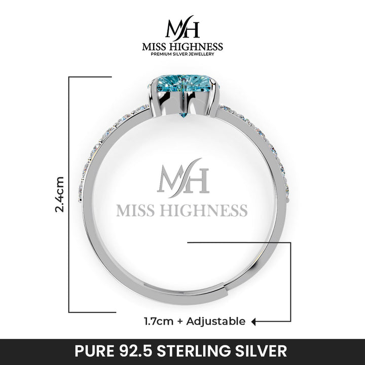 Miss Highness 925 Sterling Silver Heart-Shaped Blue Zircon Ring For Women & Girl's