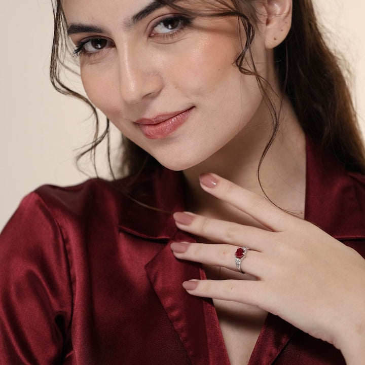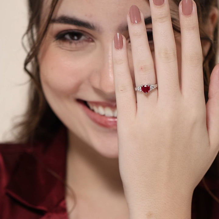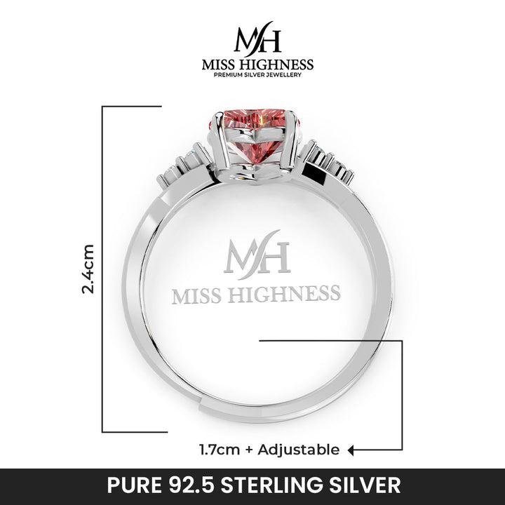 Miss Highness 925 Sterling Silver Red Heart CZ Diamond Ring for Women & Girls