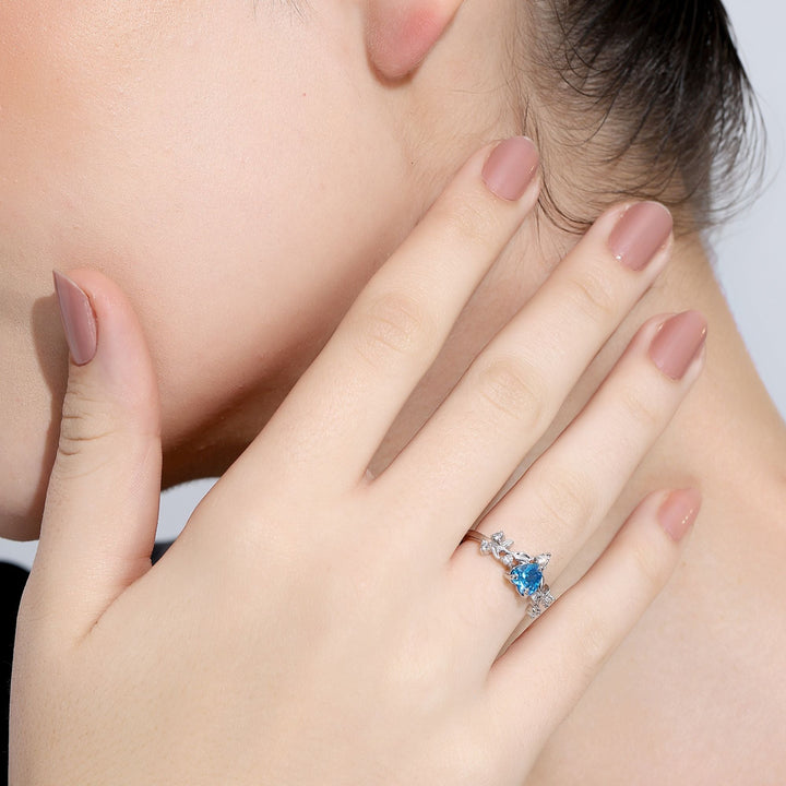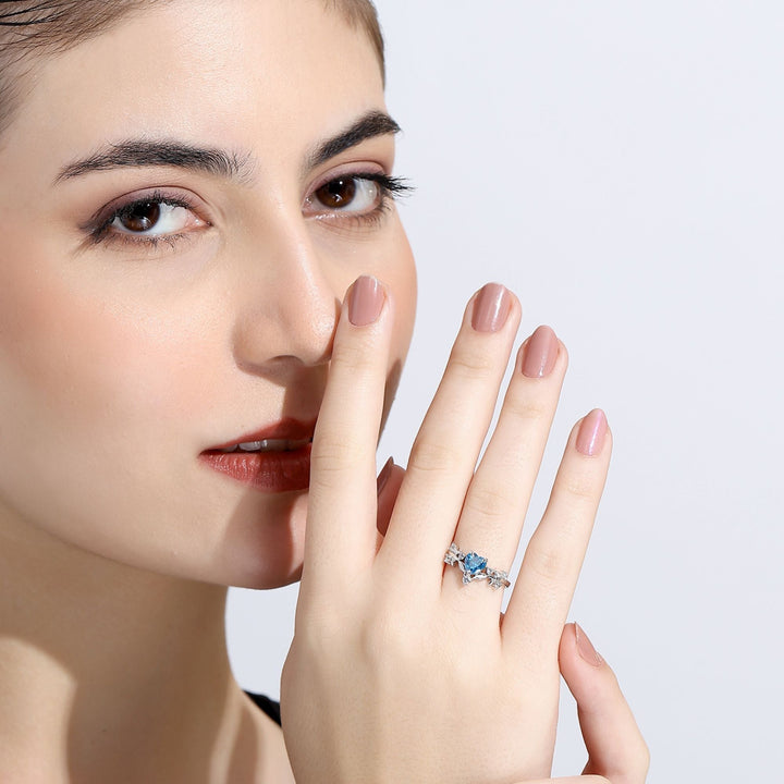 Miss Highness 925 Sterling Silver Sky Blue Heart CZ Ring for Women & Girls