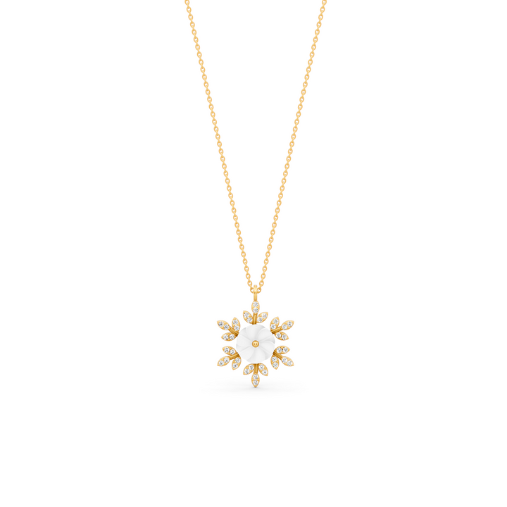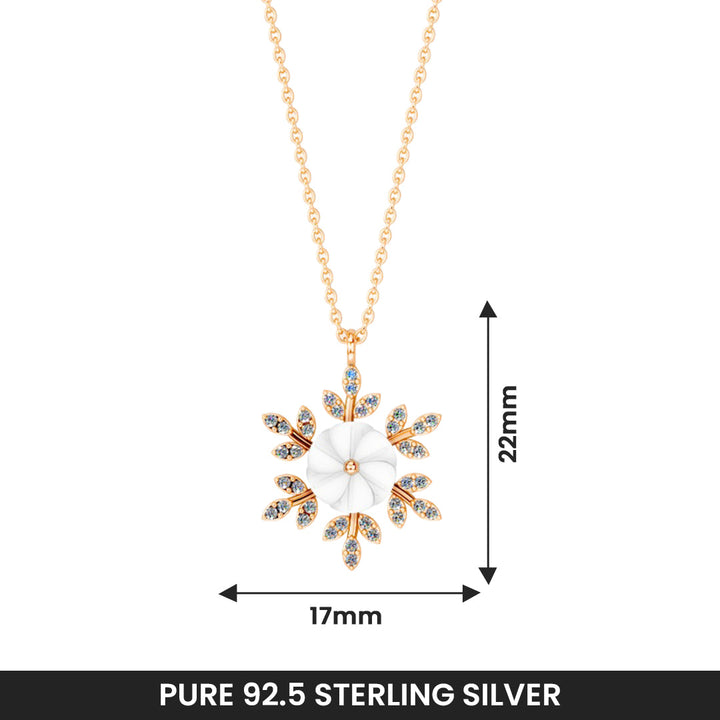 Miss Highness Floral Pendant Necklace Rose Gold Finish with AAA+ Zircon & White Shell Design For Women