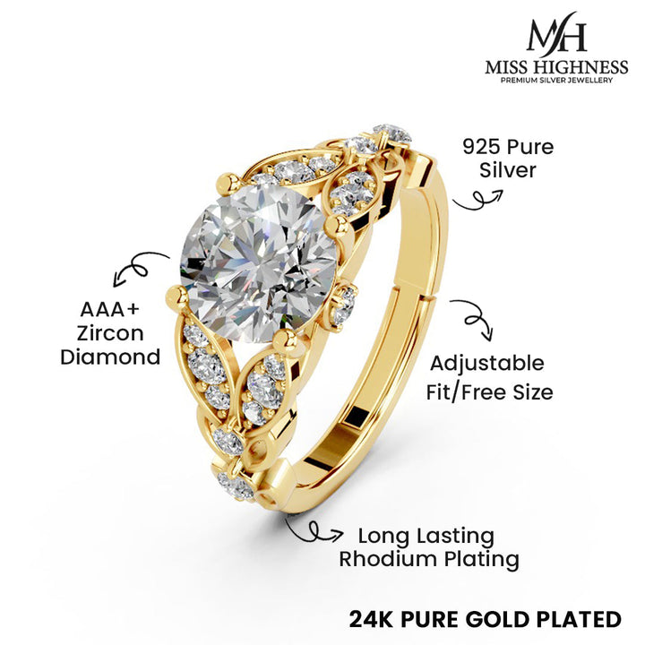 Miss Highness Gold-Plated 925 Silver Solitaire Ring for Women | CZ Embellished Vintage Floral Design