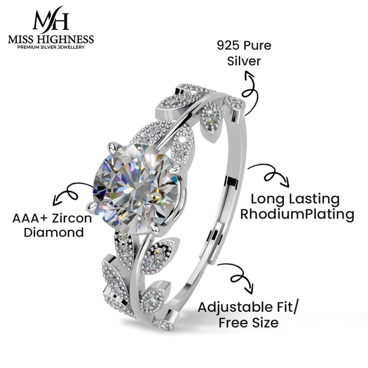 Miss Highness Premium 925 Silver Floral Leaf Ring for Women