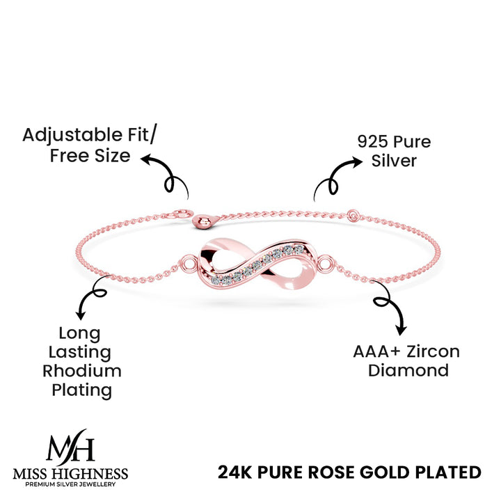 Miss Highness Rose Gold 925 Silver Bracelet with AAA+ Zircon & Floral Design – Adjustable for Women