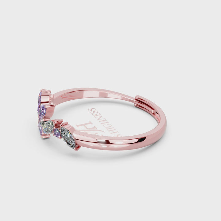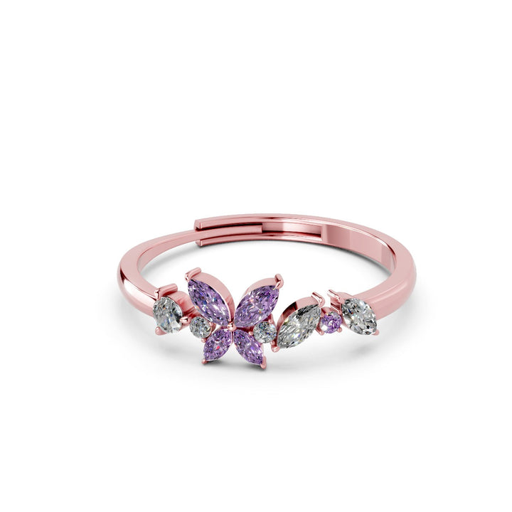 Whether you're looking for a rose gold floral ring, purple CZ ring, marquise stone ring, or a unique 925 silver designer ring, this piece is an ideal match for daily wear, parties, or gifting.