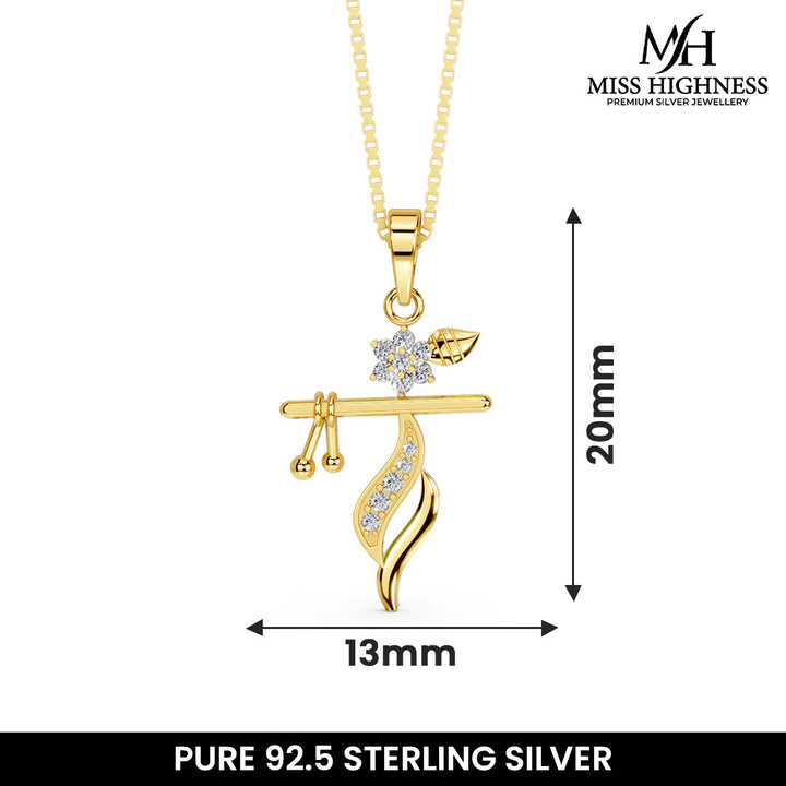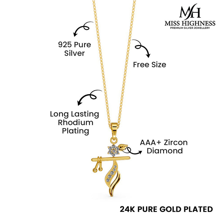 Miss Highness Shri Krishna Bansuri Pendant Gold-Plated 925 Silver | CZ Studded Flute Necklace for Men & Women