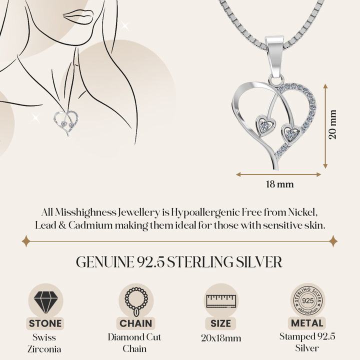 Pure 925 Silver Beautiful Love Heart Pendant with chain