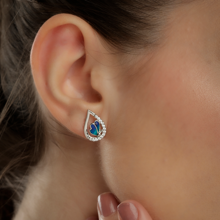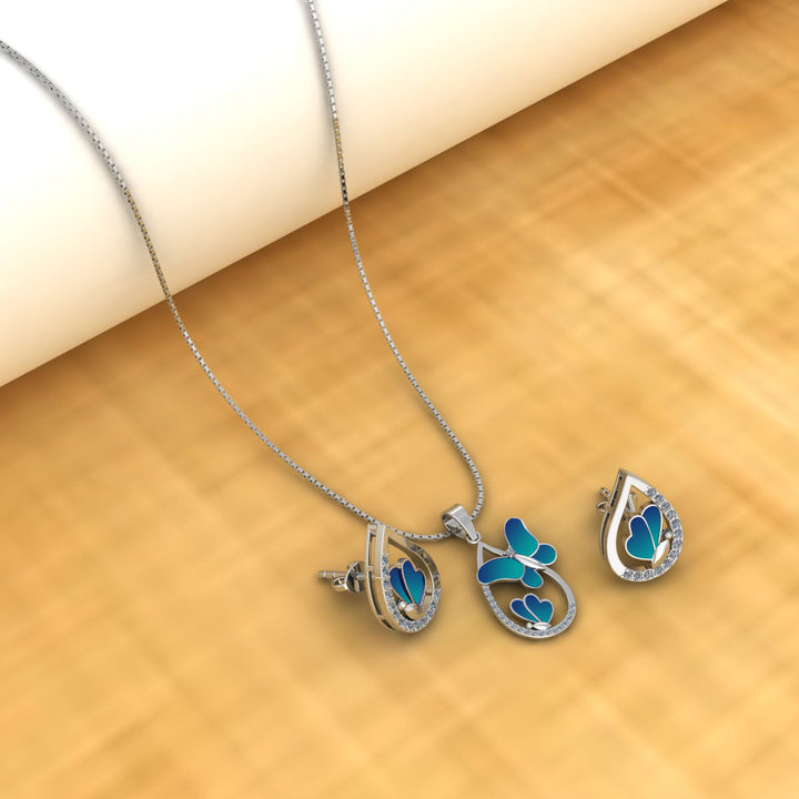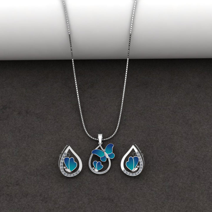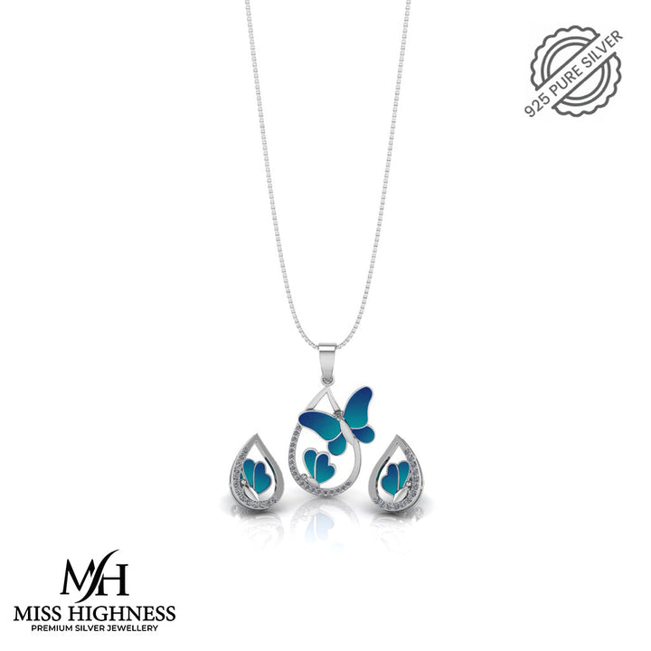 Pure 925 Silver Blue Butterfly Necklace & Earring Set with Sparkling Crystals