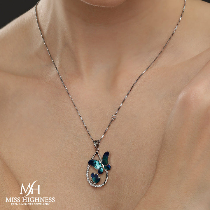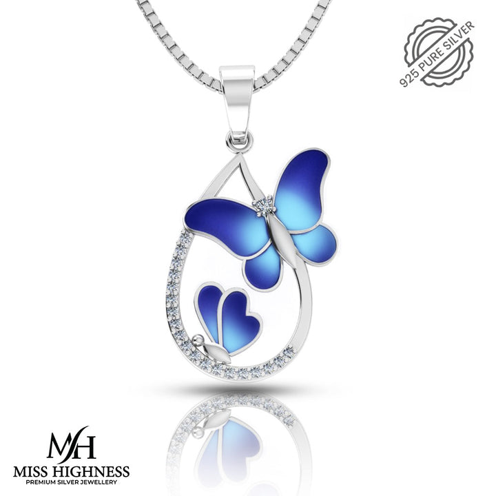Add a touch of whimsy with this Pure 925 Silver Vintage Blue Butterfly Pendant for Ladies! Made with pure 925 silver, this pendant features a vintage blue butterfly design that will surely make a statement. Perfect as a gift for any quirky and fun-loving lady!