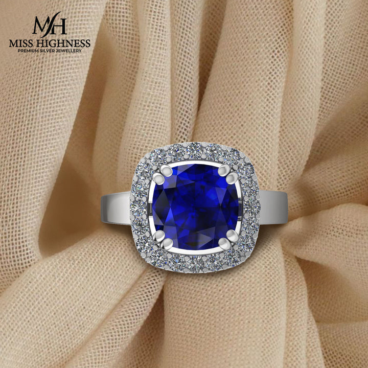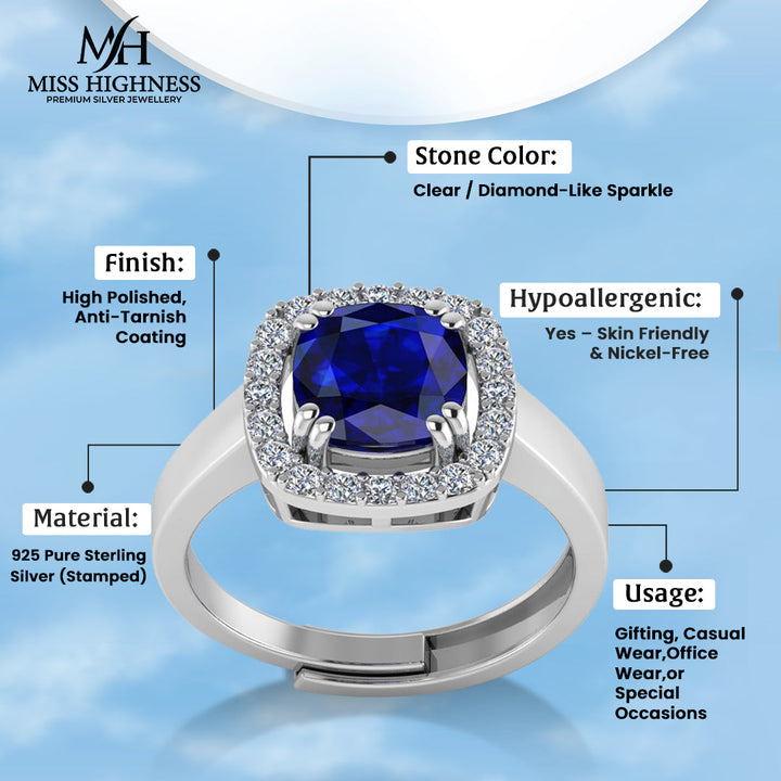 Pure 925 Silver Blue Stone Sapphire engagement Ring for Girls