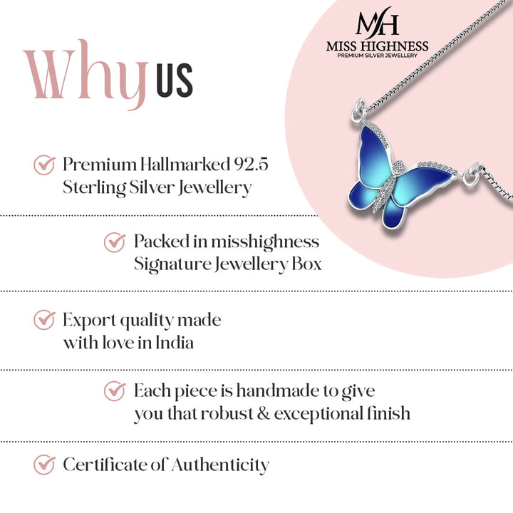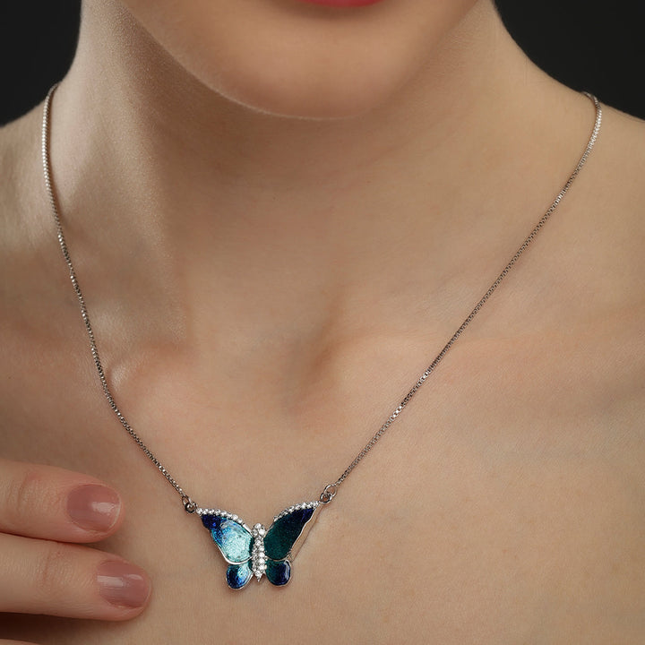 Pure 925 Silver Blue Butterfly Sparkle Pendant pendent with chain