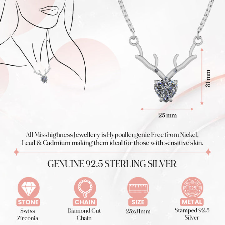 Pure 925 Silver Deer Heart Pendant pendent with chain