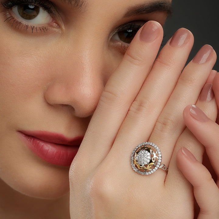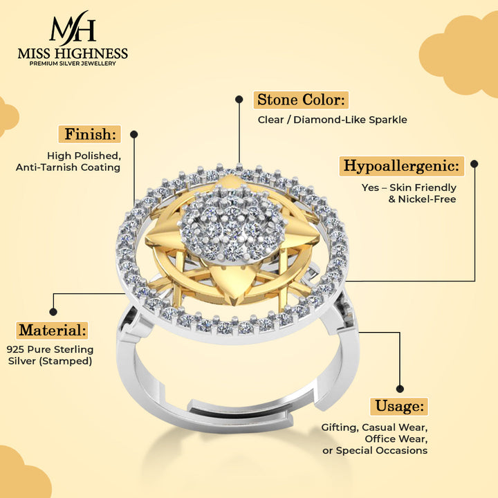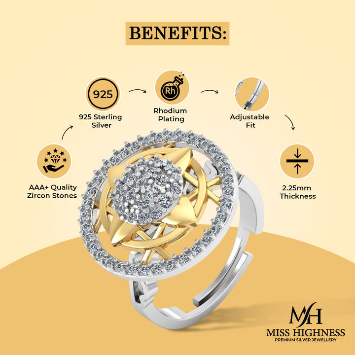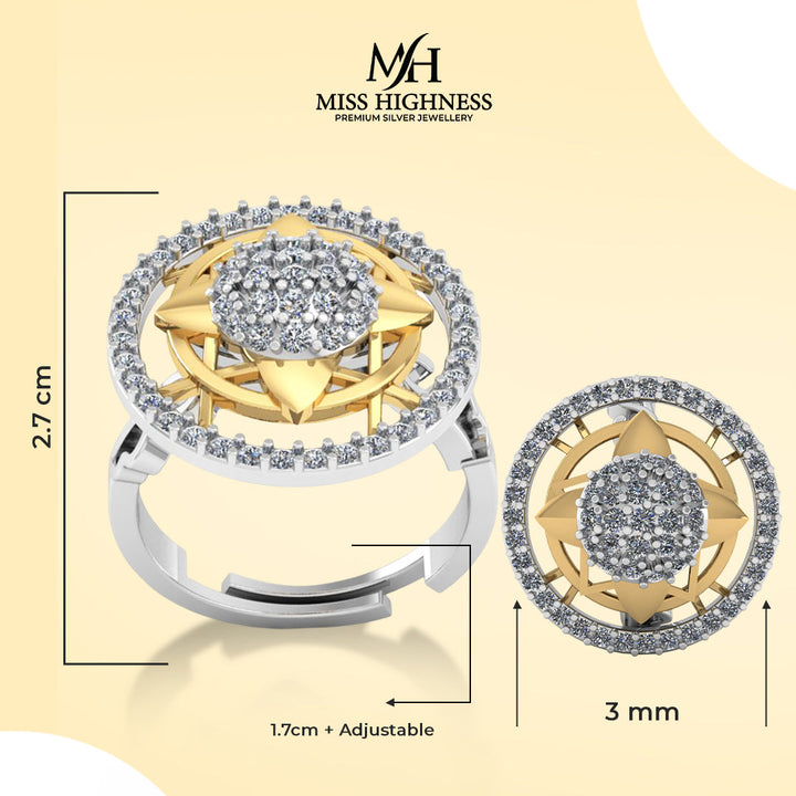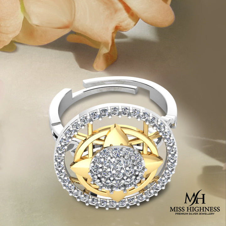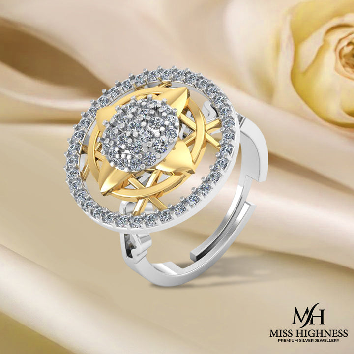 Pure 925 Silver Delicate Halo Gold Stylish Ring For Ladies