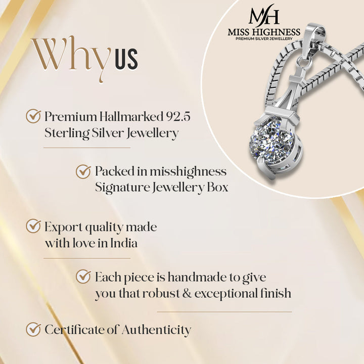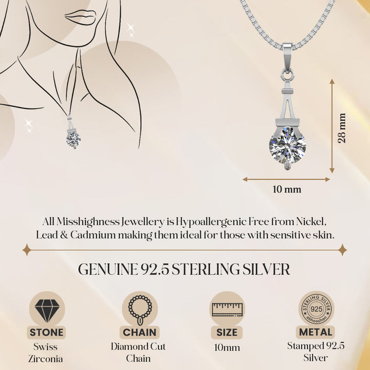 Pure 925 Silver Eiffel Tower Luxury Pendant with chain