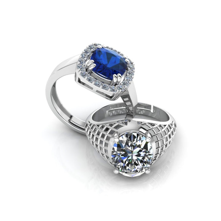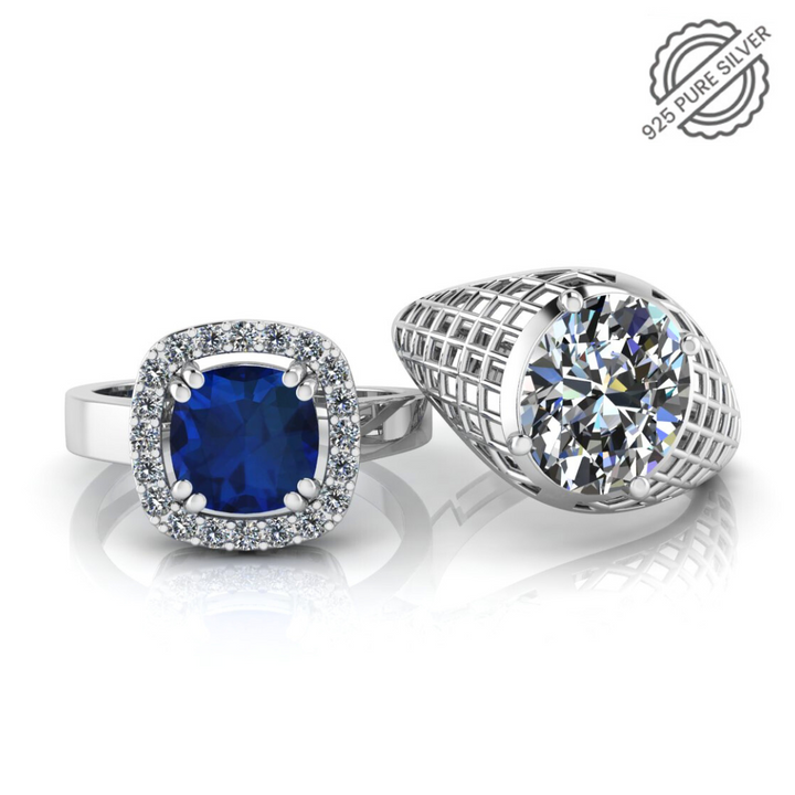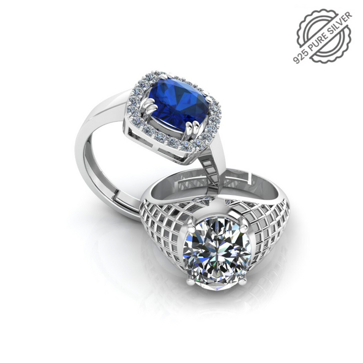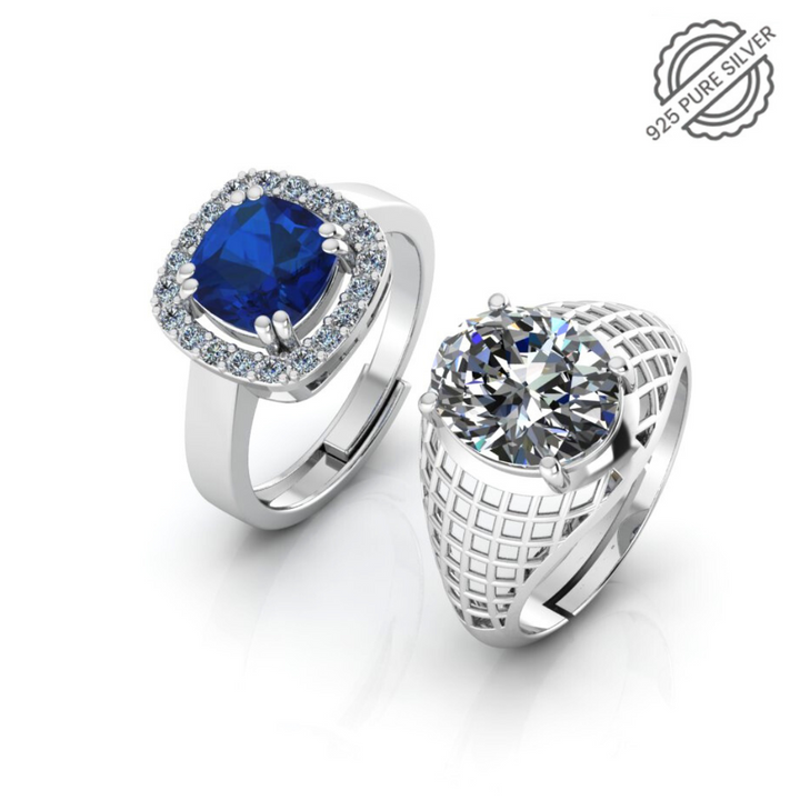 Find your perfect match in this Pure 925 Silver Glamira Jonasia Blue Sapphire Couple's Ring. With its dazzling blue sapphires and enchanting silver band, this ring is the ultimate symbol of love and commitment. Show off your love in style and stand out as a unique couple with this special ring. (Love at first sight? We think so! 💍)