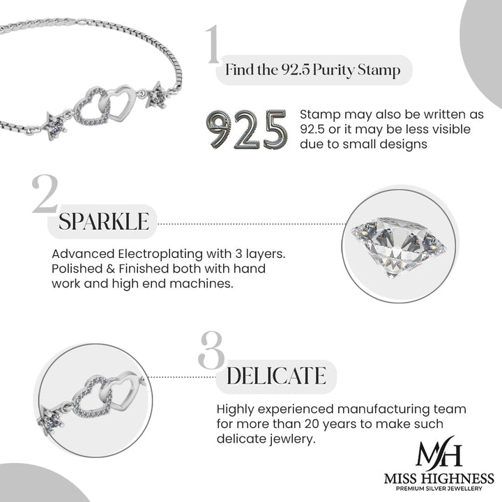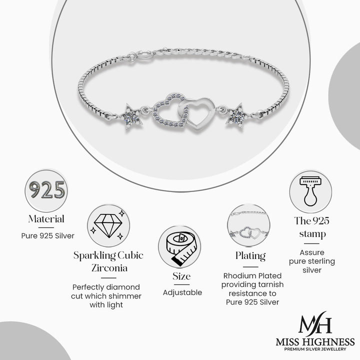 Pure 925 Silver Heart Charm Bracelet For Ladies