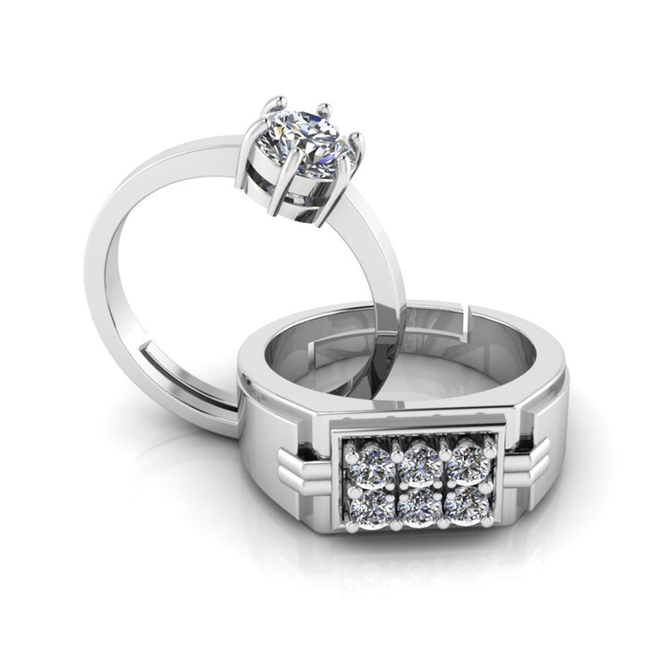 Pure 925 Silver Hip Hop Solitaire Couples Ring