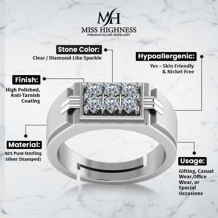 Pure 925 silver special Hiphop ring - a must-have for any real funky dude! Get your style on point and keep it classic with this sleek yet solid silver ring that amps up your bling factor. Shine on!
