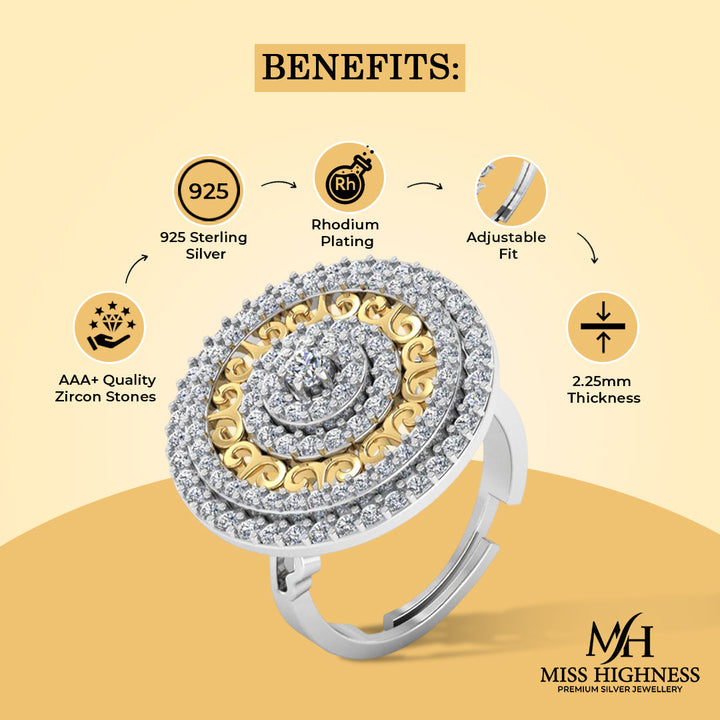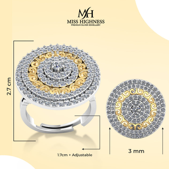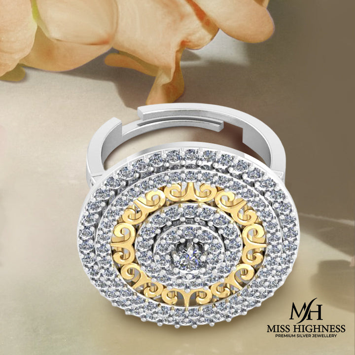 Pure 925 Silver Round Cocktail Gold Plated Special Ring For Girls