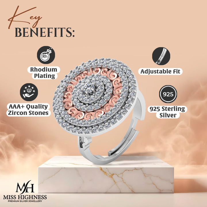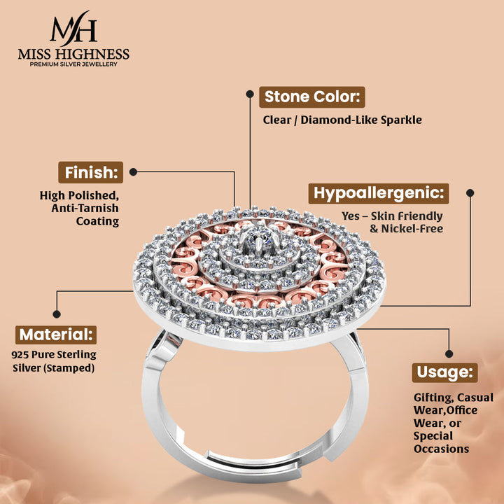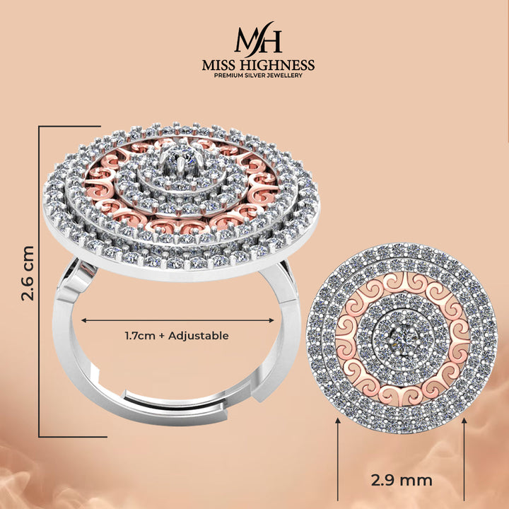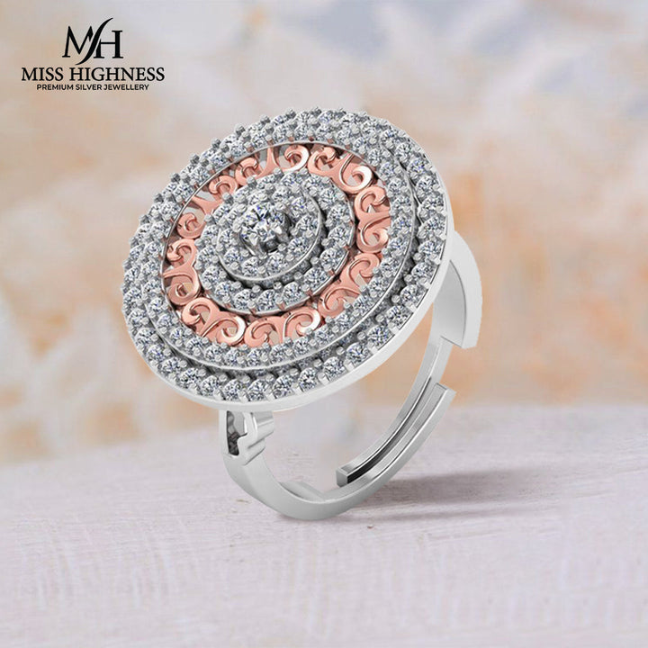 Pure 925 Silver Round Rose Gold Plated Special Ring For Ladies