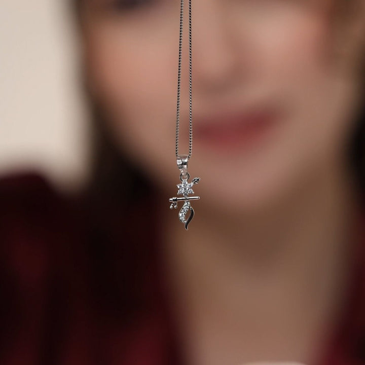 Pure 925 Silver Shri Krishna Flute Pendant pendent with chain