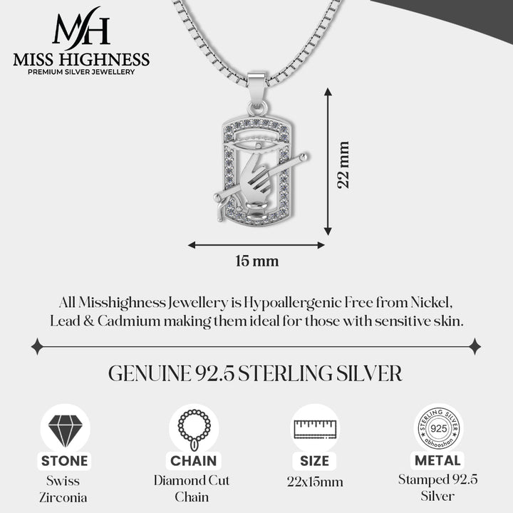 Pure 925 Silver Shri Krishna Sudarshan Chakra flute pendant with Silver Link Chain