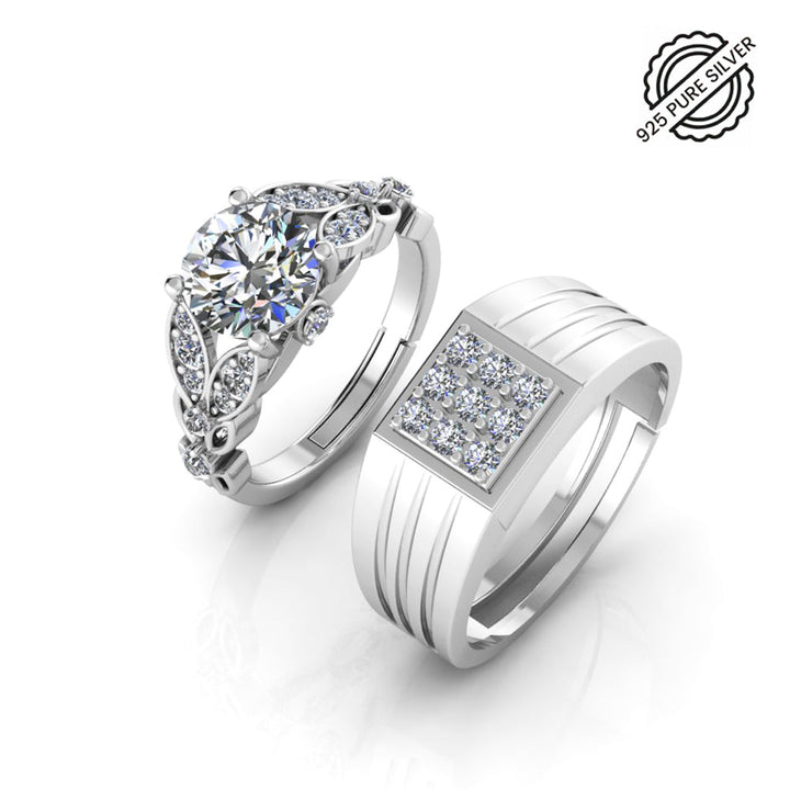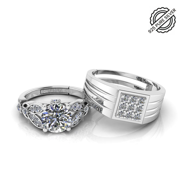 Pure 925 Silver Special Cluster Austrian Engagement Ring For Couples