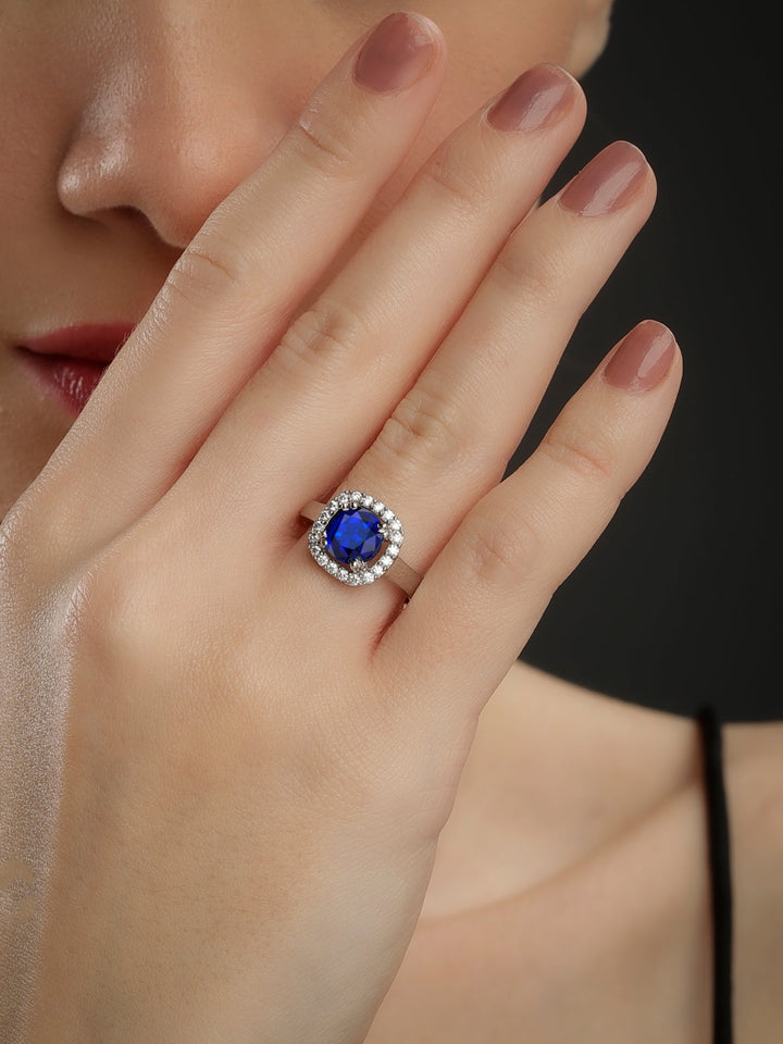 Upgrade your love game with our pure 925 silver cluster ring featuring a striking blue sapphire stone. Perfect for couples (or future ones), this ring exudes elegance and uniqueness. Get ready to dazzle in style!