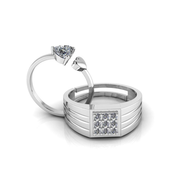 Pure 925 Silver Special Cluster Double Heart Couple's Ring