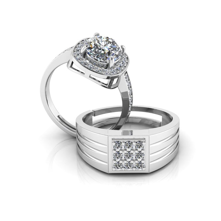 Pure 925 Silver Special Cluster Queens Couple's Ring