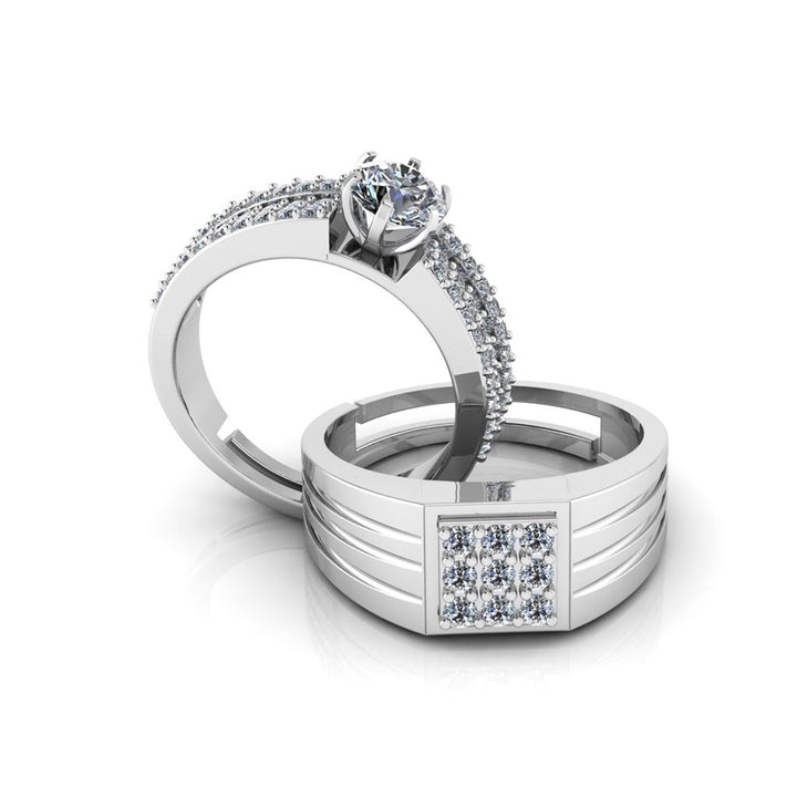 Pure 925 Silver Special Cluster Triple Lair Solitaire Couples Ring