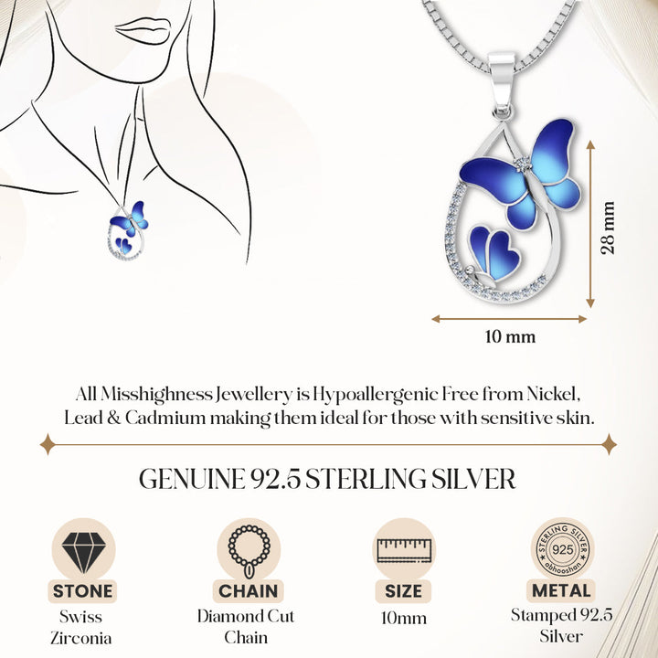 Pure 925 Silver Vintage Blue Butterfly Pendant with chain