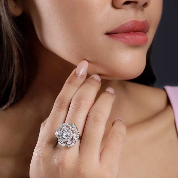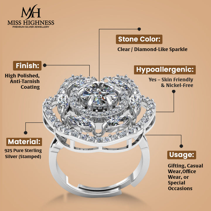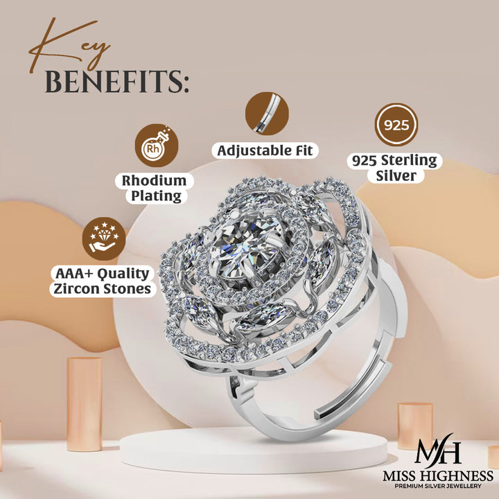 Pure 925 Silver Vintage Rose Flower Special Ring for Ladies
