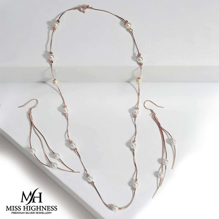 Rose Gold Plated Pearl-Studded Silver Pendant set