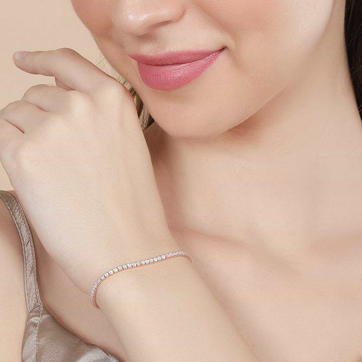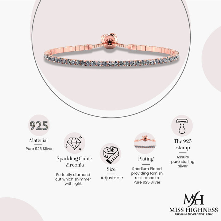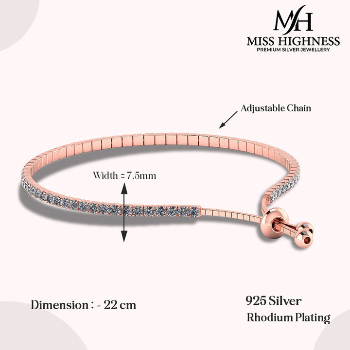 Rose Gold Tennis Silver Bracelet with American Diamond