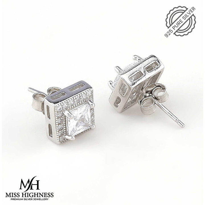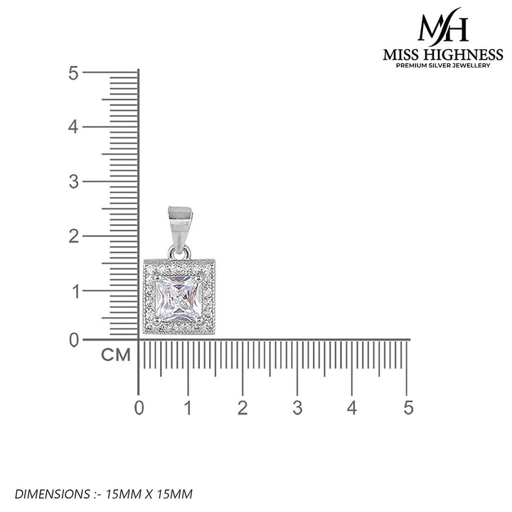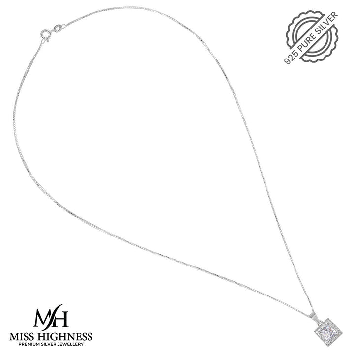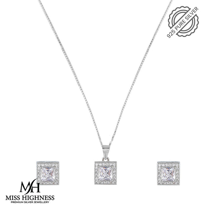 Pure 925 Silver Square Necklace Set with Chain and Earring
